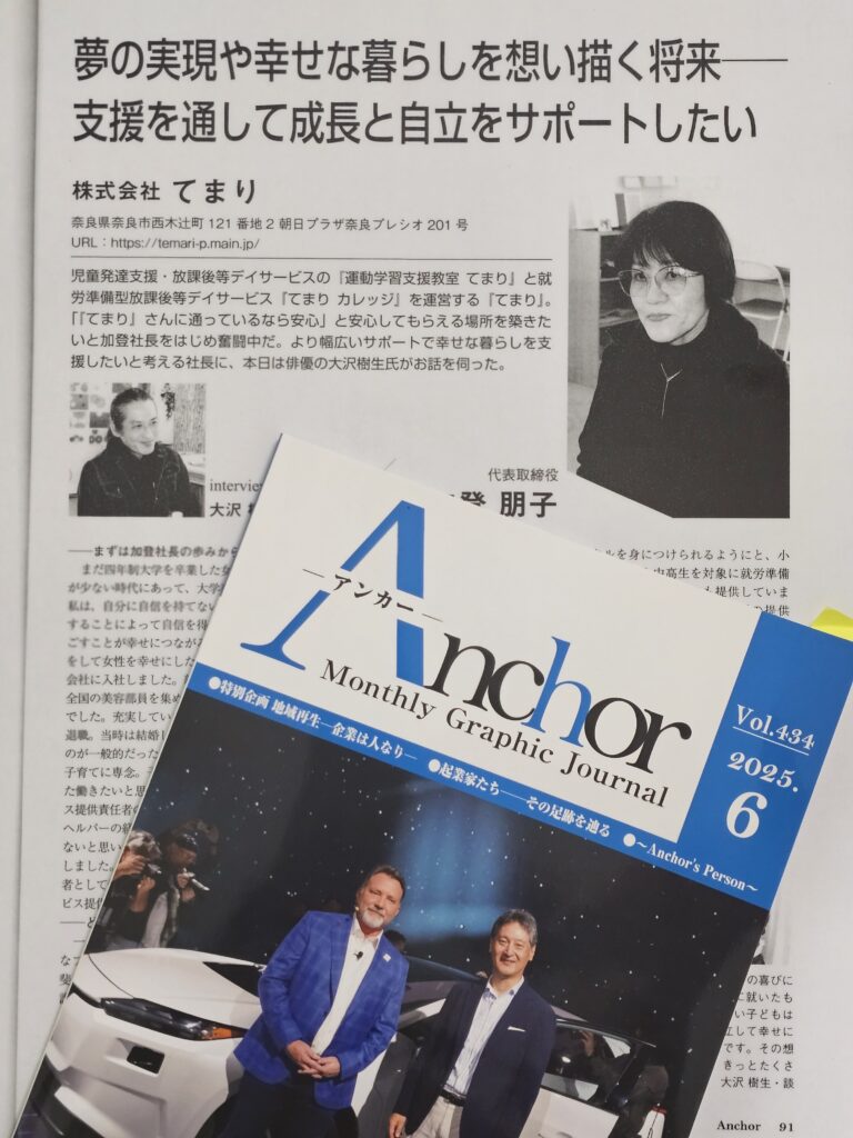 【メディア掲載】雑誌「Anker」でてまりの取り組みが紹介されました! このたび、株式会社てまりの活動が、経営情報誌「Anker」2025年6月号に掲載されました。 記事では、放課後等デイサービス「運動学習支援教室てまり […]